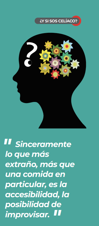 A.: Tal cual… esa espontaneidad en relación con qué comer que los celíacos ya no tenemos. Siempre debemos organizar previamente, para no pasar hambre.